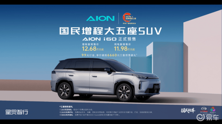 易车讯11月3日,广汽埃安i60正式开启预售,其中纯电版预售价11.98万元起,增程版预售价12.68万元起。新车定位为紧凑型SUV,采用最新的家族设计语言,预售期间,下订用户仅需99元就可获得价值6660的三重礼遇。